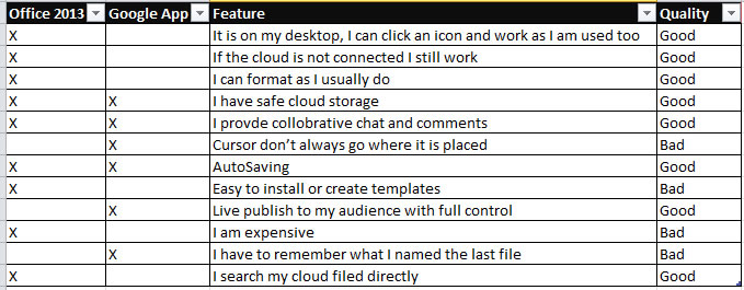 I love Windows Office 2013 over Google Apps, it will be great if Google Apps, can develop a client base office product, using the same model as Office 2012.